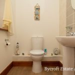 CLOAKROOM wc; pedestal wash hand basin with mixer tap; frosted window.