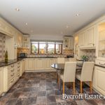 KITCHEN / DINER 14' 10" x 12' 0" (4.52m x 3.66m) fitted with large l-shaped worktop with a good range of base cupboards and drawers; integrated dishwasher and fridge; eye level NEFF oven and grill with matching four ring hob; one and a half bowl sink with mixed tap; range of wall units including glass fronted display units; window to rear aspect; downlights; door to Utility.