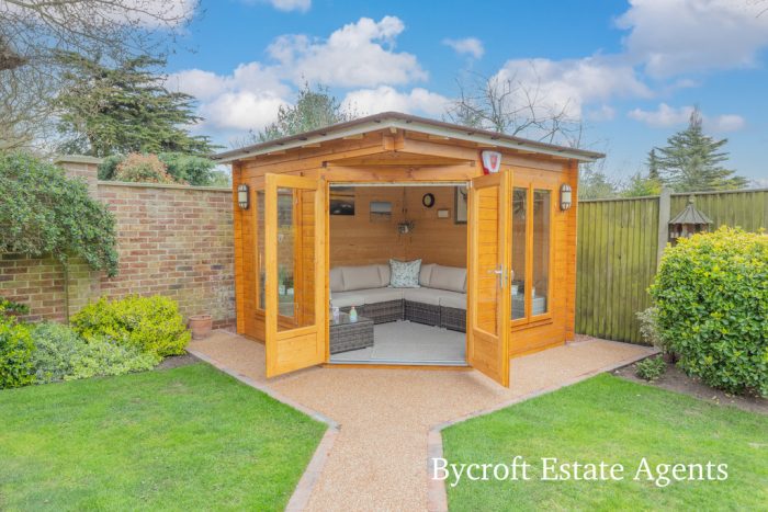 OUTSIDE To the front of the property there is an immaculately presented garden with lawn and borders with shrubs and plants, wrought iron fencing and double gates leading to a large double width driveway. Wrought iron gate and pathway round to both sides of the property. To the rear there is a beautifully presented fully enclosed garden mainly laid to lawn with patio area, shaped borders with shrubs, plants and flowers, resin pathway, summerhouse and outside tap. Double garage which measures 19' 9" x 19' 1" with two up and over doors, Vaillant gas boiler (installed February 2022), light, power, rear window and rear personal door.