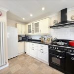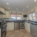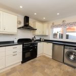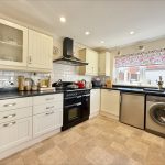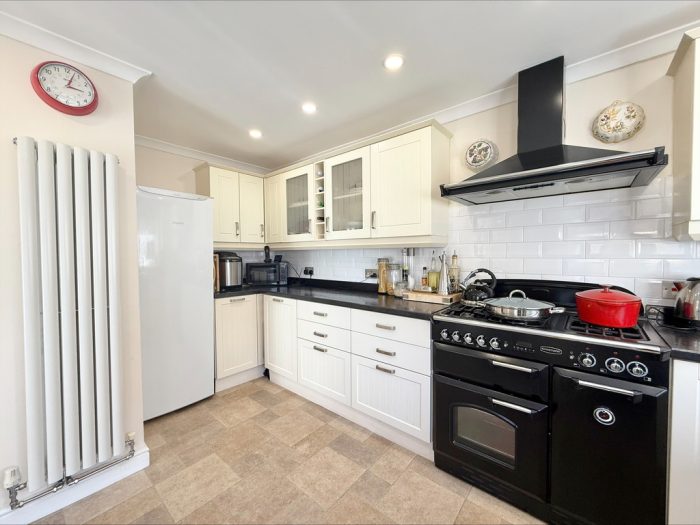 KITCHEN 10' 1" x 14' 6" max (3.07m x 4.42m) fitted with a range of wall and base units with roll edge worksurface over; inset stainless steel single drainer sink with mixer tap; space for five ring range cooker with cooker hood over; plumbing for dishwasher and automatic washing machine; space for fridge freezer; tiled splashbacks; UPVC double glazed windows to rear and side aspects; UPVC double glazed door to side leading to Rear Lobby.