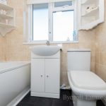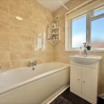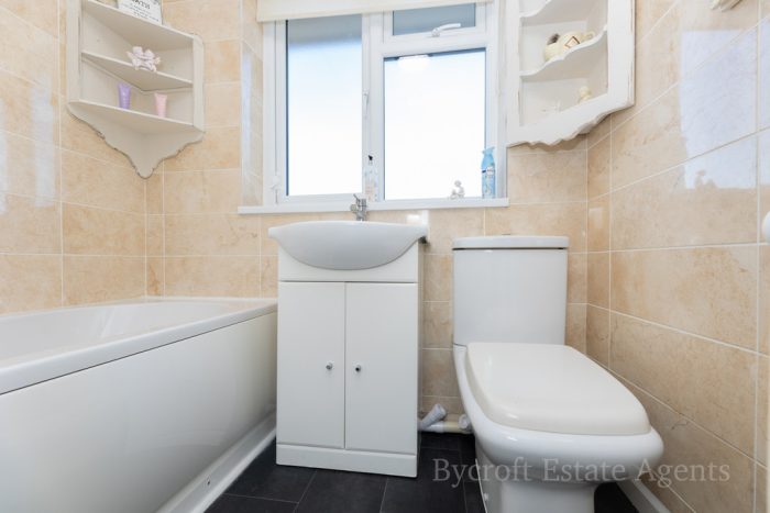 BATHROOM 6' 7" x 5' 7" (2.01m x 1.7m) fitted with a white suite comprising of a low level wc; vanity wash hand basin with mixer tap and storage cupboards; double ended panelled bath with mixer tap and wall mounted shower unit over; UPVC double glazed window to rear; fully tiled walls.