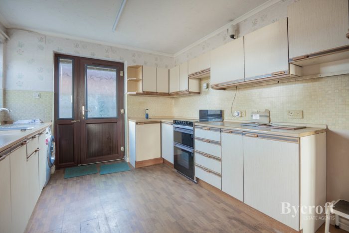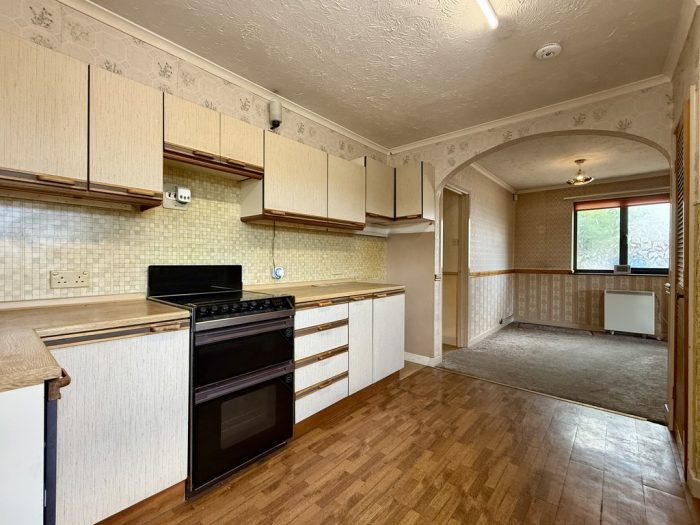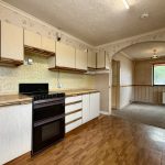 KITCHEN / DINER 22' 3" x 9' 11" (6.78m x 3.02m) side UPVC entrance door with fixed side panel; worktops with a range of base cupboards and drawers under; freestanding Belling oven and grill; one bowl sink with mixer tap; LG washing machine; range of wall units; windows to front and side aspects; storage heater; built in shelved storage cupboard; doors to Lounge and Rear Hall.