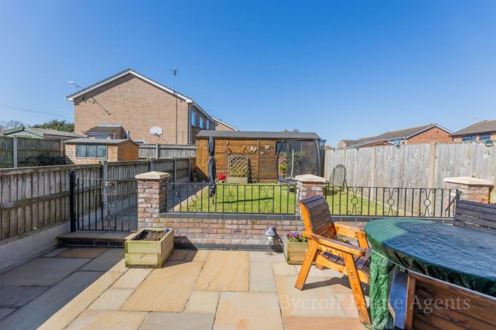 OUTSIDE To the front of the property there is a driveway with space for two car standing with side gate and pathway to the entrance door. Gated access to an enclosed west facing rear garden with paved patio, low brick walling with wrought iron fencing and gate to lawned area with timber shed.