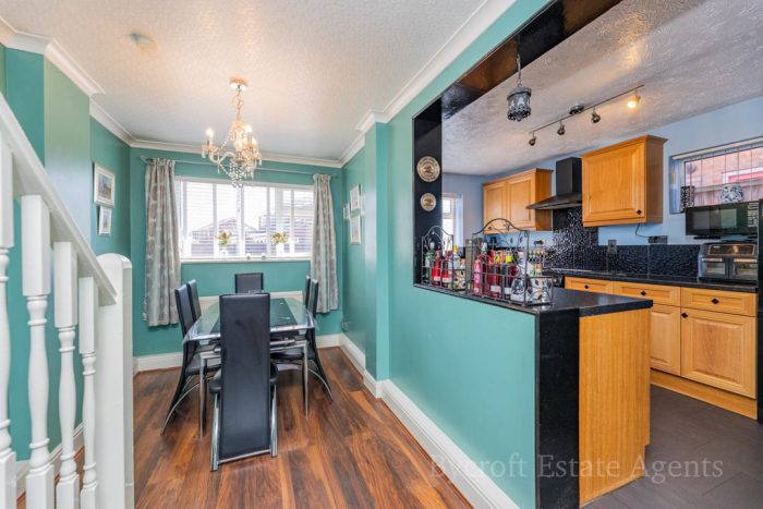 GUIDE PRICE £240,000-£250,000 Bycroft Estate Agents are delighted to present this spacious three bedroom semi-detached family house situated in this sought after cul-de-sac location close to shops and amenities including schools for all ages. Accommodation comprises entrance hall, kitchen with large opening to dining room, good size lounge, first floor landing, three bedrooms, bathroom, front double width driveway, well presented enclosed west facing rear garden, gas central heating and double glazing.