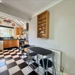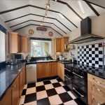KITCHEN 12' 10" max x 9' 0" max (3.91m x 2.74m) fitted with a range of wall and base units with quartz worksurfaces over; inset stainless steel one and a half bowl sink with mixer tap; five ring range cooker with cooker hood over and tiled splashback; UPVC double glazed windows to front and side; space for fridge freezer; plumbing for dishwasher; vaulted ceiling.