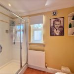 SHOWER ROOM 8' 4" max into cubicle x 6' 11" (2.54m x 2.11m) fitted with a white suite comprising of a vanity wash hand basin with mixer tap and storage cupboards; low level wc; walk in shower cubicle with wall mounted electric shower unit; tiled splashbacks; UPVC double glazed window to front; built in cupboard.