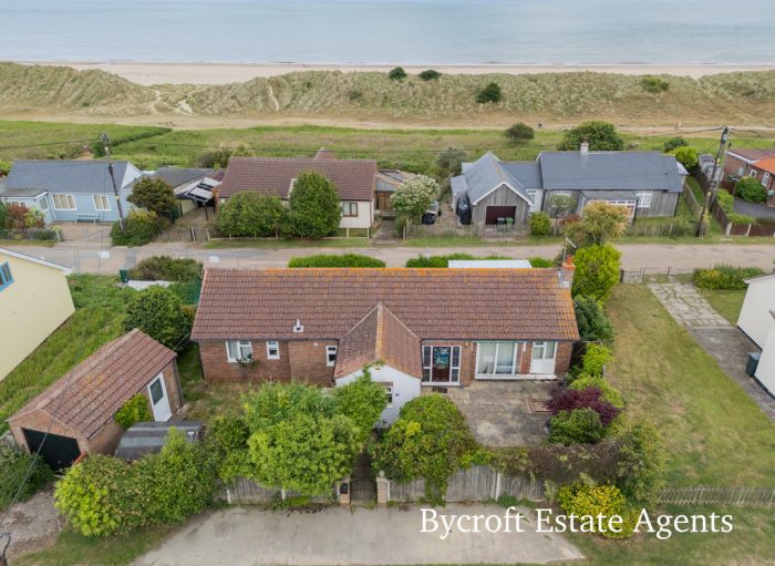 Bycroft Estate Agents are delighted to present this individually built detached bungalow situated in a sought after coastal position within the village of Hemsby. Offering three double bedroom accommodation with en suite bathroom to principal, shower room, open plan entrance hall linking into a vaulted ceiling kitchen fitted in a traditional style with quartz worksurfaces, spacious living room with feature open fireplace and conservatory. To the outside are gardens to the front and rear, the front laid mainly to lawn with a paved patio area providing the idea space for relaxing or entertaining with single garage and to the rear is a further enclosed garden area laid mainly to lawn with driveway parking. The property benefits from UPVC double glazing and oil fired central heating and an internal inspection is highly recommended to fully appreciate the style and quality of accommodation on offer.