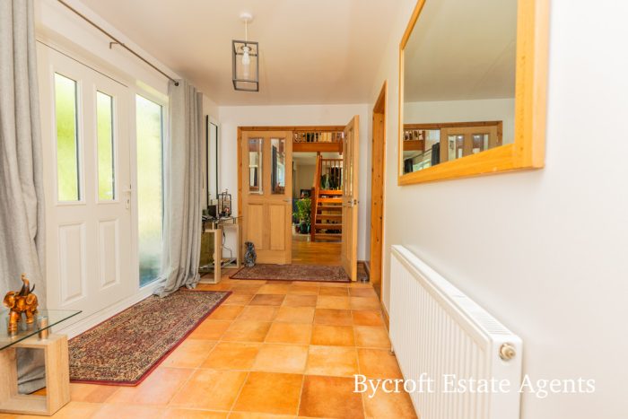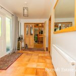 ENTRANCE HALL 35' 9" max x 7' 1" max (10.9m x 2.16m) double glazed composite door to side flanked by two full height UPVC obscure glass windows to side; loft access; tiled flooring; built in storage cupboard.