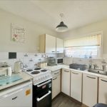 OPEN PLAN LOUNGE / DINING / KITCHEN 18' 5" max x 12' 4" max (5.61m x 3.76m) UPVC double glazed door and window to front; wall mounted electric fire; built in cupboards; kitchen area fitted with a range of wall and base units with roll edge worksurfaces over; inset stainless steel single drainer sink; space for electric cooker; tiled splashbacks; UPVC double glazed window to rear.