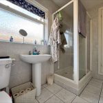 SHOWER ROOM wc; hand wash basin; walk in shower cubicle with an electric wall mounted shower; UPVC double glazed window to side aspect.