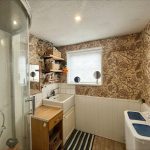 SHOWER ROOM upvc double glazed window to side, vanity hand wash basin with cupboard below; corner quadrant shower cubicle with sliding shower screen doors and wall mounted shower unit.