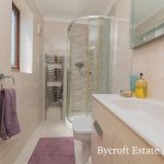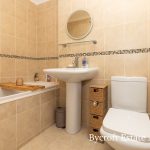 FAMILY BATHROOM 7' 8" x 5' 8" (2.34m x 1.73m) fitted with a white suite comprising of a low level wc; pedestal wash hand basin with mixer tap; double ended panelled bath with mixer tap and shower attachment over; fully tiled walls; tiled flooring; UPVC double glazed window to side; heated towel rail radiator.