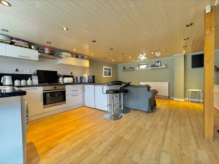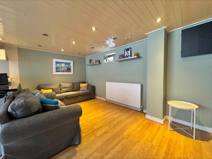 KITCHEN/DINER/LOUNGE 19' 9" x 16' 3" (6.02m x 4.95m) upvc double glazed door to front; upvc double glazed window; modern fitted kitchen with a range of wall and base units; integrated oven and hob above; integrated sink and drainer and space for white goods. Lounge area; upvc double glazed door to rear aspect; stairs to first floor with understairs cupboard.