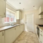 KITCHEN 8' 2" x 7' 11" (2.49m x 2.41m) worktops with a range of base cupboards and drawers; integrated washing machine and fridge freezer; built in Zanussi oven with four ring gas hob and light and extractor; one and a half bowl sink with mixer tap; wall units; side window; downlights.