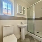 SHOWER ROOM wc; pedestal wash hand basin with mixer tap; shower cubicle with mains fittings; frosted side window; extractor fan; downlights.