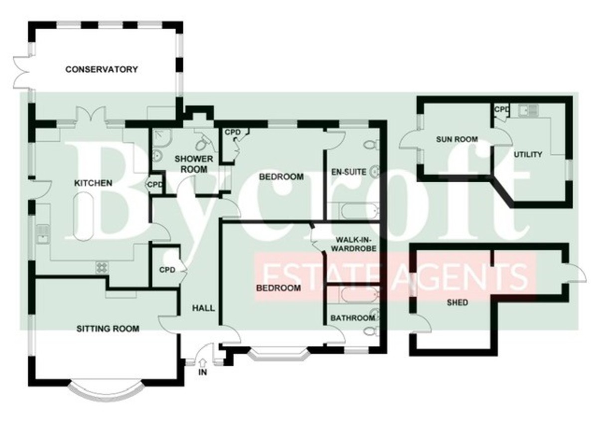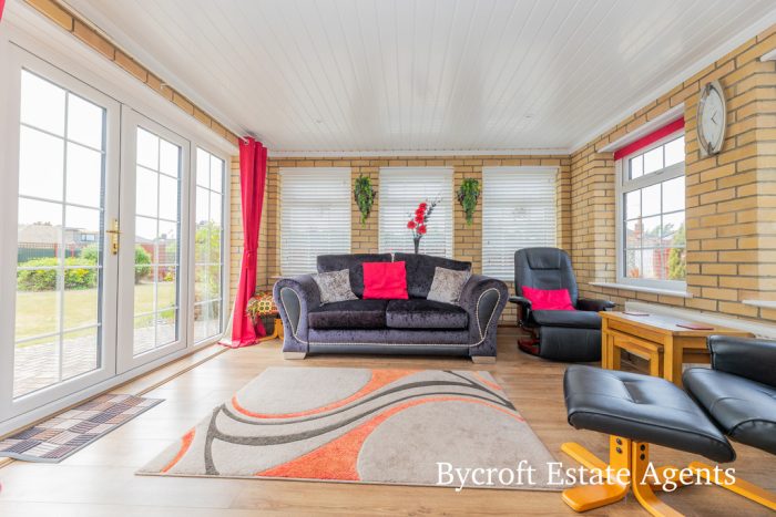 GUIDE PRICE £465,000-£475,000 Bycroft Estate Agents are delighted to present this unique and truly stunning two/three bedroom detached bungalow situated in this quiet and sought after location together with unusually large rear garden and large side driveway. The bungalow is situated in this convenient location close to shops and amenities. Accommodation comprises spacious entrance hall, lounge, kitchen/diner, garden room/bedroom 3, bedroom 1 with dressing room and en suite, bedroom 2 with en suite, spacious family shower room, good size front garden, large side driveway, usually large rear garden with utility/office and summerhouse, gas central heating and double glazing.