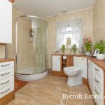 SPACIOUS FAMILY SHOWER ROOM large shower with Aqualisa fittings; vanity unit comprising wash hand basin with mixer tap and storage cupboards and drawers with mirror over with wall cabinets; corner vanity unit comprising wc with concealed push button cistern and storage cupboards and drawers; chrome heated towel rail; frosted window; tiled flooring.