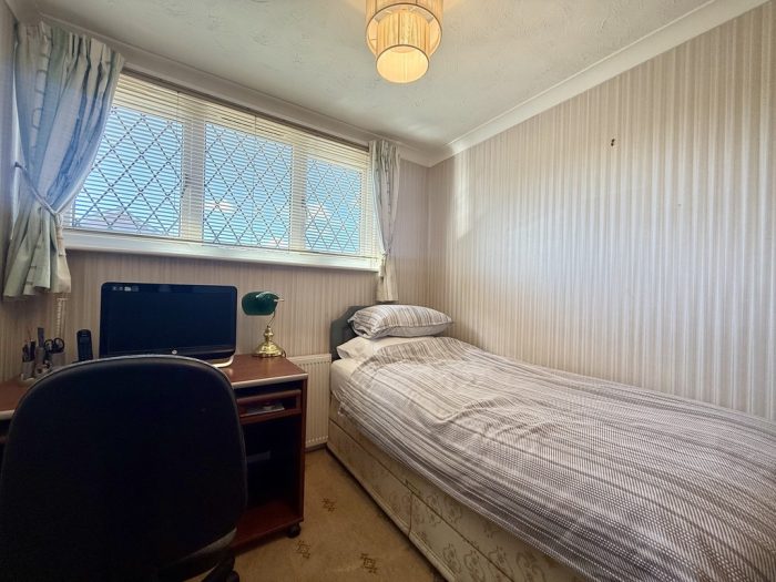 BEDROOM 3 11' 5" x 8' 5" (3.48m x 2.57m) plus built in double wardrobe; window to front aspect; radiator.