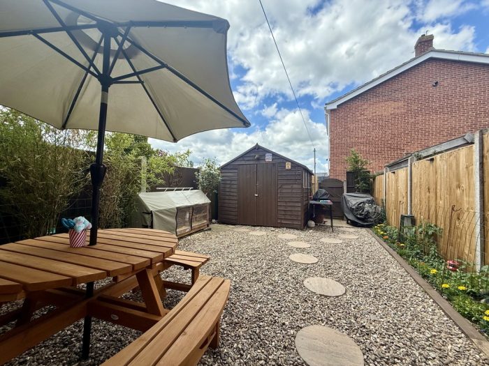 OUTSIDE To the front of the property there is a low maintenance garden mainly laid to shingle with a pathway to the front door, shrubs and plants. To the rear there is an enclosed, low maintenance, garden mainly laid to shingle with stepping stone pathway, side borders with shrubs and flowers, timber shed, outside tap and rear gate providing pedestrian access. Allocated car parking space.