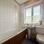 BATHROOM bath with mains shower fittings over (currently not working) and screen; pedestal wash hand basin; wc; radiator; frosted window; extractor fan.