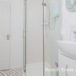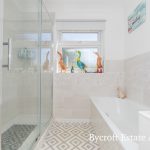 BATHROOM  12' 8" max x 6' 11" max (3.86m x 2.11m) fitted with a white suite comprising of a low level wc; vanity wash hand basin with waterfall tap and storage cupboards under; panelled bath with waterfall tap; walk in shower cubicle with sliding door, wall mounted electric shower unit and tiled wall coverings; tiled splashbacks to remaining walls; UPVC double glazed windows to rear and side; heated towel rail radiator; wall mounted electric heater; built in storage cupboard.
