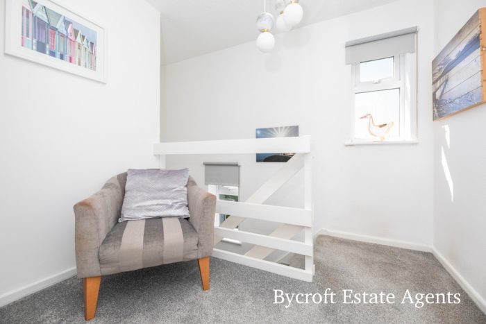 FIRST FLOOR LANDING 7' 7" x 7' 10" max minus stairwell (2.31m x 2.39m) UPVC double glazed window to side; loft access.