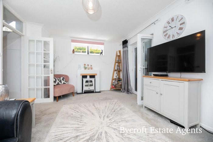 SITTING ROOM 17' 4" x 11' 5" max (5.28m x 3.48m) UPVC double glazed window to side; built in display shelving; wall mounted electric heater/aircon unit.