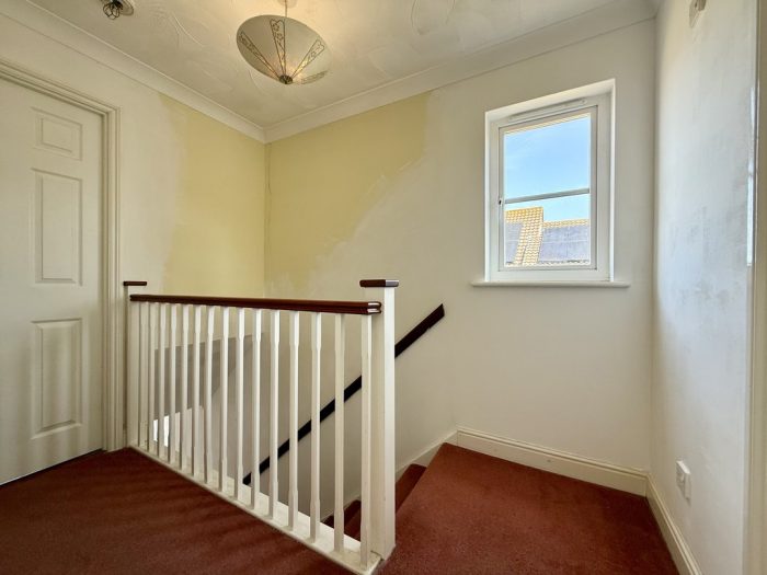 FIRST FLOOR LANDING access to roof space; side window; airing cupboard with immersion tank and shelving.