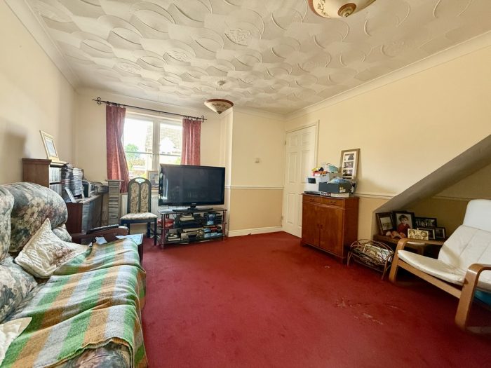 LOUNGE 13' 8" max x 14' 9" max (4.17m x 4.5m) including understairs recess; window to front aspect; two radiators; double doors to Kitchen / Diner.