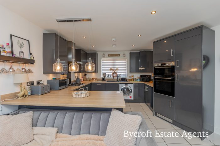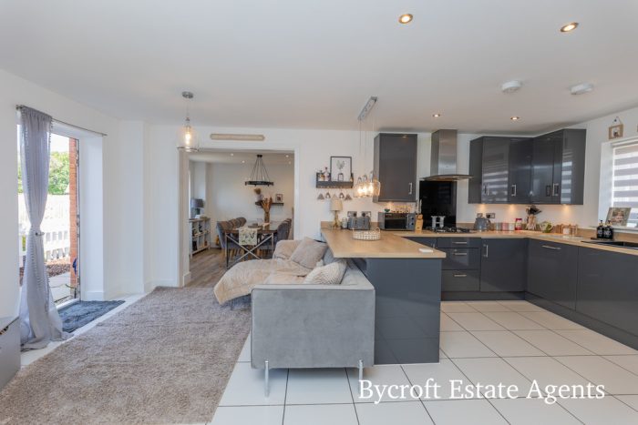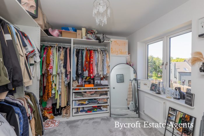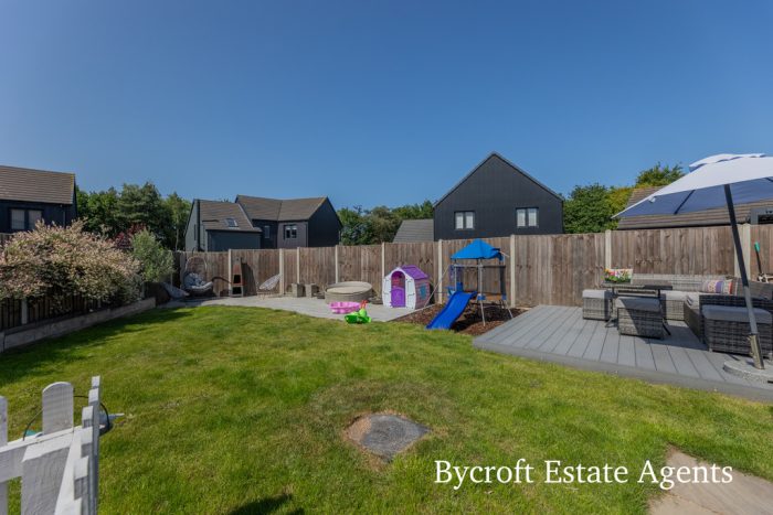 OUTSIDE To the front of the property is a lawned area. pathway to front door; double width driveway with space for four cars standing. Garage is currently being used as a gym/storage area. To the rear of the property is a good size rear garden with paved pathways; lawned area; patio areas; wood chip play area.
