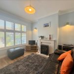 SITTING ROOM 11' 2" max x 10' 8" (3.4m x 3.25m) upvc double glazed window to front with fitted shutters; feature fireplace with decorative surround,