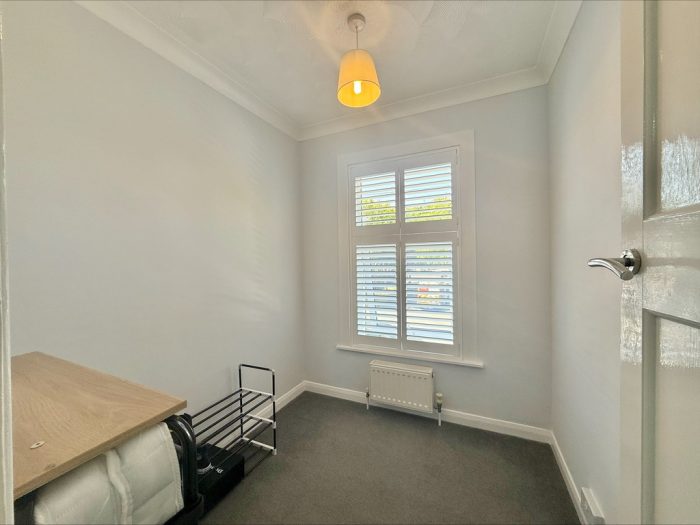 BEDROOM 3 6' 5" x 6' 11" (1.96m x 2.11m) upvc double glazed window to front with fitted shutters.