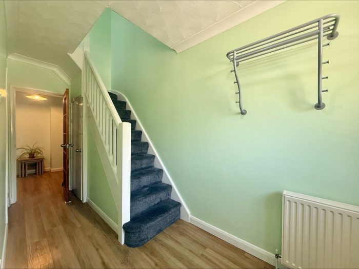 ENTRANCE HALL 14' 8" x 5' 6" minus stairwell (4.47m x 1.68m) upvc double glazed door to front; stairs to first floor landing; understairs storage cupboard.