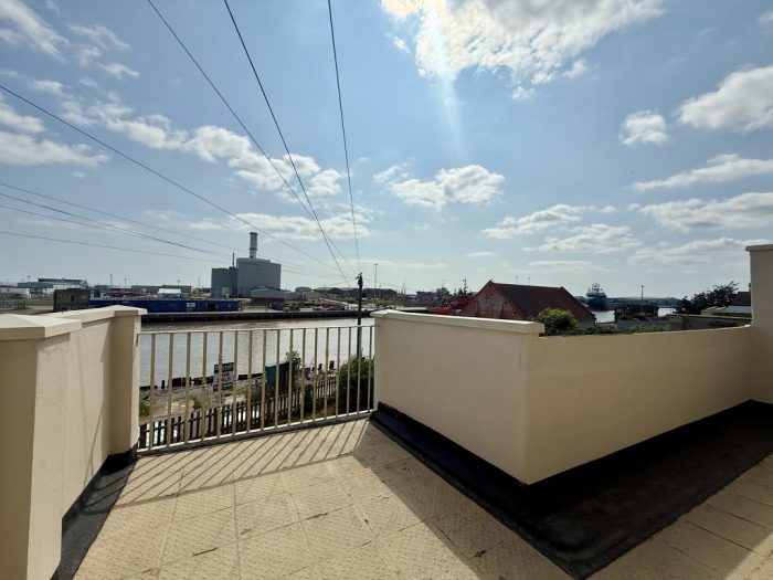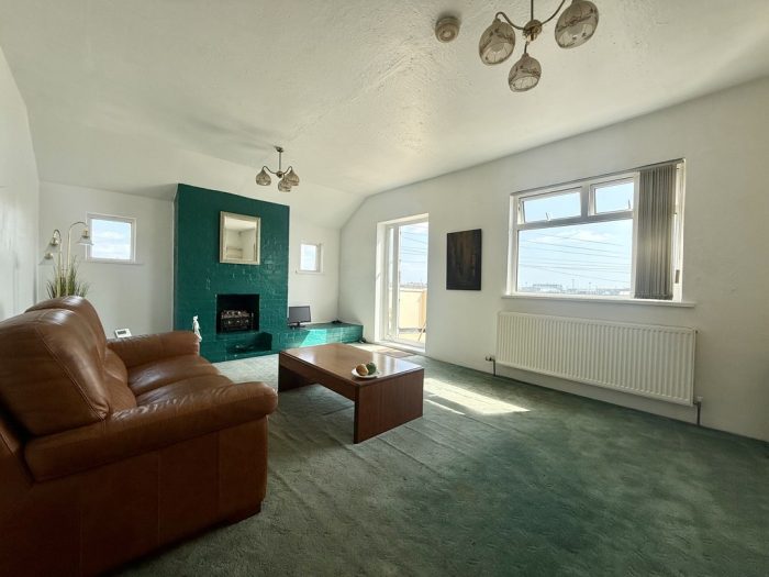 LOUNGE 19' 5" max x 13' 0" (5.92m x 3.96m) fireplace; side windows; rear window and door leading out to the balcony which enjoys fantastic uninterrupted river views and sea views beyond. radiator.