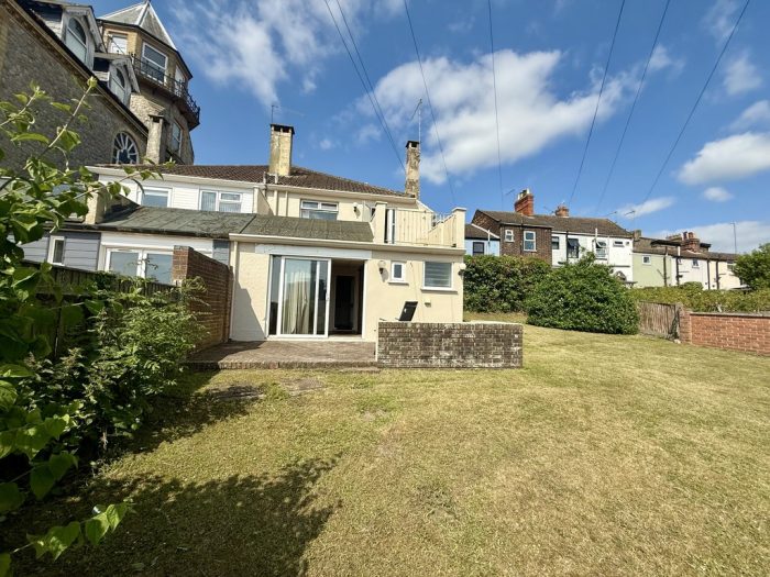 OUTSIDE To the front of the property is a front forecourt with ornamental tree and side gate with steps leading to the rear garden. To the rear of the property is a patio area with low brick walling; good size l-shaped lawn with shrubs and plants. Steps providing access to the side pathway and gate to the front of the property.
