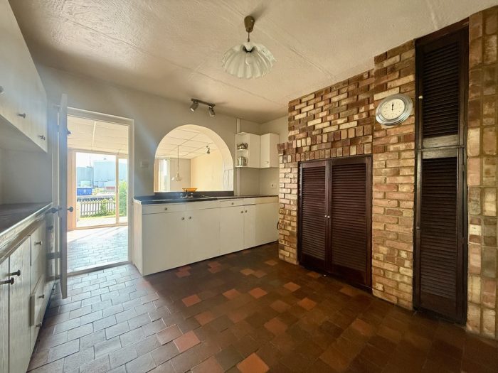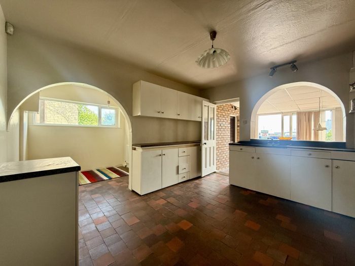 KITCHEN 12' 10" x 12' 0" (3.91m x 3.66m) chimney breast with storage cupboard; worktop and base cupboards and drawers; one bowl sink; wall units; radiator; open archway through to: