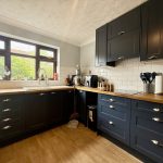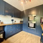 KITCHEN 9' 1" x 11' 8" (2.77m x 3.56m) worktops/breakfast bar with a range of base cupboards and drawers; two eye level ovens and grill; four ring hob with concealed light and extractor; ceramic bowl and a half sink with mixer tap; range of wall units; window to front aspect.