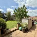 OUTSIDE To the front of the property there is a driveway area with space for two cars standing, outside tap, shrubs and plants and canopied storm porch approach to the front door. Side access gate with pathway and storage area round to a good size, enclosed, rear garden with paved patio areas, lawn, variety of shrubs, plants and fruit trees, two timber storage sheds and gate providing pedestrian access from rear driveway and single garage with up and over door.