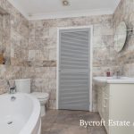 BATHROOM Large corner bath; vanity wash hand basin; wc; tiled floor and walls; radiator; airing cupboard with shelving incorporating large solar hot water cylinder.