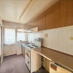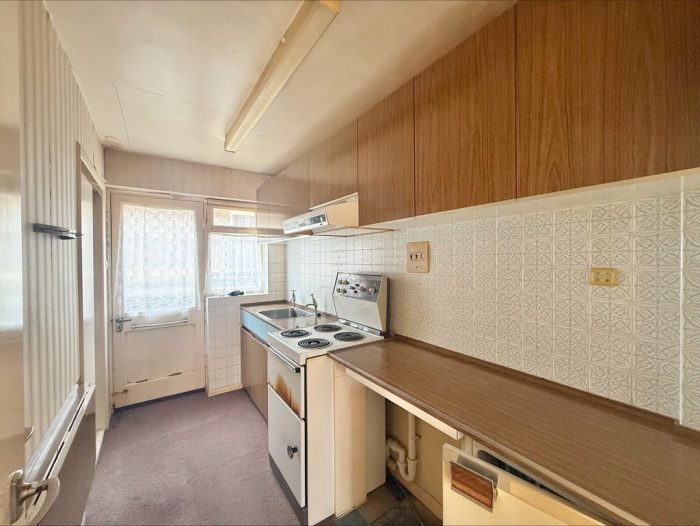 KITCHEN 10' 4" x 5' 2" (3.15m x 1.57m) fitted with a range of wall and base units with lipped edge worksurfaces over; electric cooker point; tiled splashbacks; inset stainless steel sink; door to side; double glazed window to side; built in pantry cupboard; built in airing cupboard; space for fridge freezer.