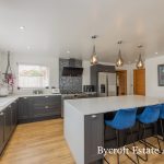 KITCHEN / DINER / FAMILY ROOM 24' 5" x 18' 6" + recess (7.44m x 5.64m) newly fitted; quartz worktops good range of base, cupboards and drawers under including integrated dishwasher; space for range oven and American style fridge freezer; pan drawers; one and a half bowl sink with boiling water tap; extractor; large island/breakfast bar with cupboard and pan drawers under; wine fridge. Windows to front and side aspect; 2 radiators; corner cast iron wood burner; downlights.