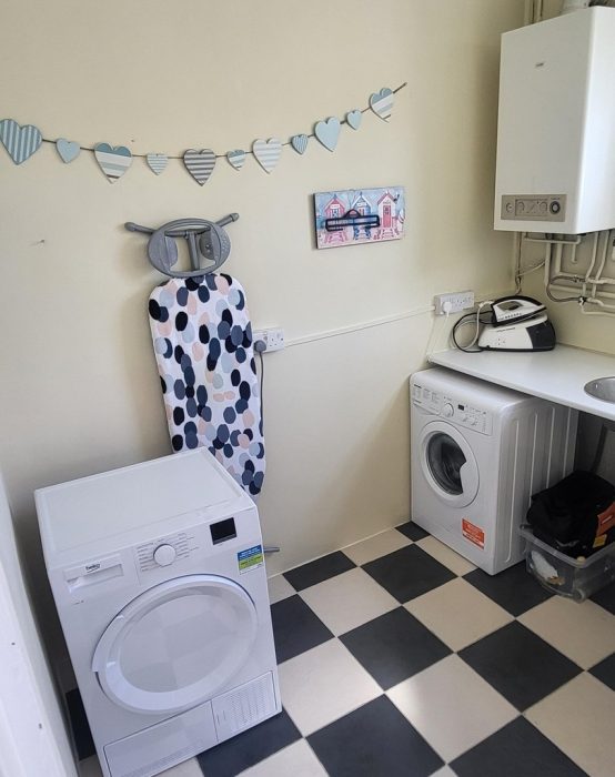 UTILITY ROOM 8' 2" x 6' 1" (2.49m x 1.85m) built in worksurfaces with inset stainless steel single bowl sink with mixer tap; wall mounted gas fired central heating boiler; tiled splashbacks; UPVC double glazed door to rear; plumbing for automatic washing machine; tiled flooring.