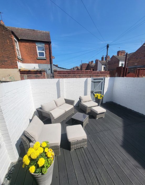 OUTSIDE To the outside front of the property is a traditional style terraced garden laid mainly to pave for low maintenance with a wrought iron gate and paved pathway approach to the covered storm porch and front door. To the outside rear of the property is an enclosed garden laid mainly to raised deck with a low maintenance slate border providing the ideal space for relaxing or entertaining and rear access gate.