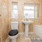 BATHROOM 7' 5" x 5' 4" (2.26m x 1.63m) fitted with a white suite; low level WC; pedestal wash basin and panel bath with shower screen and wall mounted electric unit over. Fully tiled walls; 2 UPVC double glazed window s to side and heated towel rail radiator.