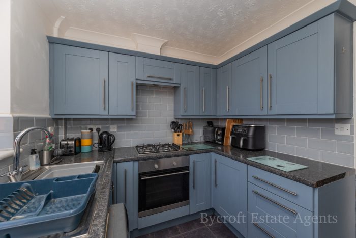 KITCHEN / BREAKFAST ROOM 11' 9" x 7' 9" (3.58m x 2.36m) U-shaped worktop with a range of base, cupboards and drawers under; built in oven with four ring gas hob; 1 ½ bowl sink with mixer taps; space and plumbing for washing machine; space for upright fridge freezer; radiator; range of wall units; gas Baxi boiler (installed approx. 2yrs ago with a 5yr warranty); window to rear aspect; UPVC door to rear garden; tiled flooring.