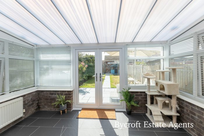 CONSERVATORY 12' 2" x 7' 2" (3.71m x 2.18m) with brick upvc construction with a polycarbonate roof; upvc double glazed windows to the side aspect and side aspect; double glazed French door to rear.