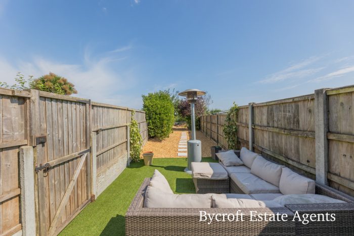 OUTSIDE To the rear of the property is an enclosed garden laid mainly to artificial turf which is an ideal space for relaxing and entertaining and wood chip for low maintenance, side access gate, paved pathways, established trees and shrubs, outside electric point. The front is laid mainly to artificial turf for low maintenance set to a pleasing aspect.