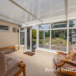 OUTSIDE The front garden area laid mainly to lawn with well stocked tree and shrub borders, driveway area providing off parking for the property and giving access to the single garage, covered storm porch and side access gate. To the rear of the property is an enclosed garden laid mainly to lawn, pave patio seating area providing ideal space for relaxing and entertaining, 2 timber storage sheds, green house, summer house, paved pathways and ornamental pond.