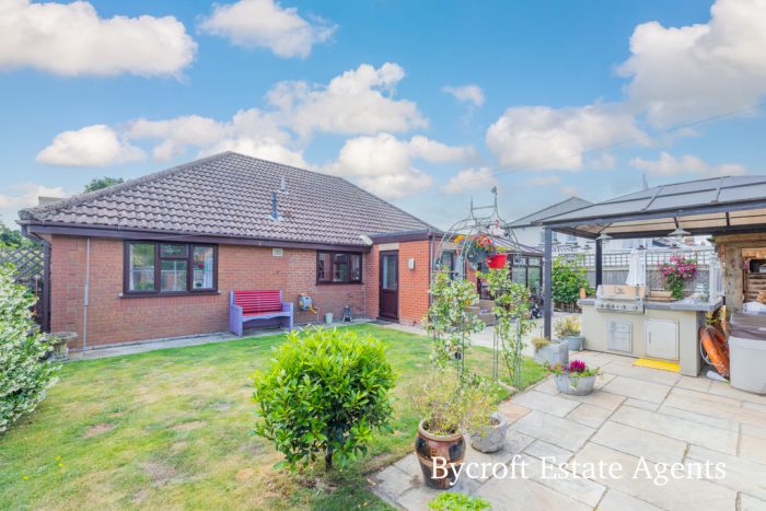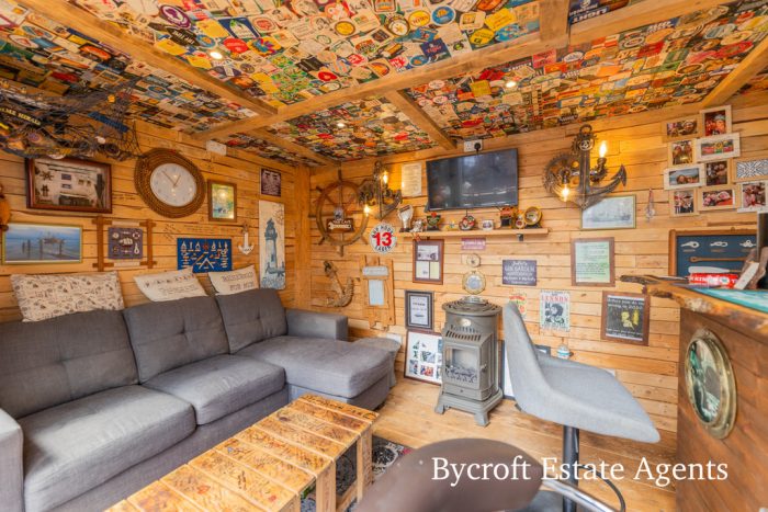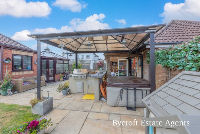 OUTSIDE To the rear of the property is driveway leading to previous detached double garage, now converted to form a superb decked covered garden bar 16'3" x 8'4" with fitted bar, light and power, space for upright fridge freezer, large French doors with fixed side panels to the outside covered garden bar, with space for hot tub. The remaining half of the garage is being used for storage. Enclosed rear garden, large patio area, lawn, variety of shrubs, plants and flowers, well fitted outside kitchen with built in BBQ, tap, lights, side pathway with storage space, gate returning to front and storage shed. Enclosed garden to the front, low brick walling, wrought iron gate and pathway to front door.