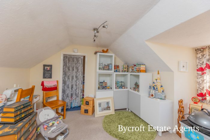 ATTIC ROOM 16' 5" x 12' (5m x 3.66m) with part sloping ceiling; window to front aspect; radiator; door providing access to eaves storage space; opening to further walk in storage cupboard.